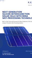 Wet chemistry processes along with proprietary wet processing equipment are increasingly used by SHJ solar cell manufacturing facilities and research labs to etch, texture, and clean solar cell silicon wafers. RENA presents its newest process results for SHJ solar cell manufacturing.